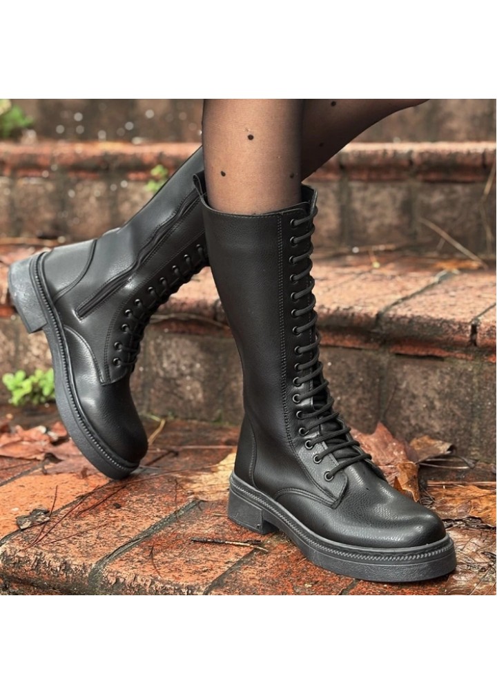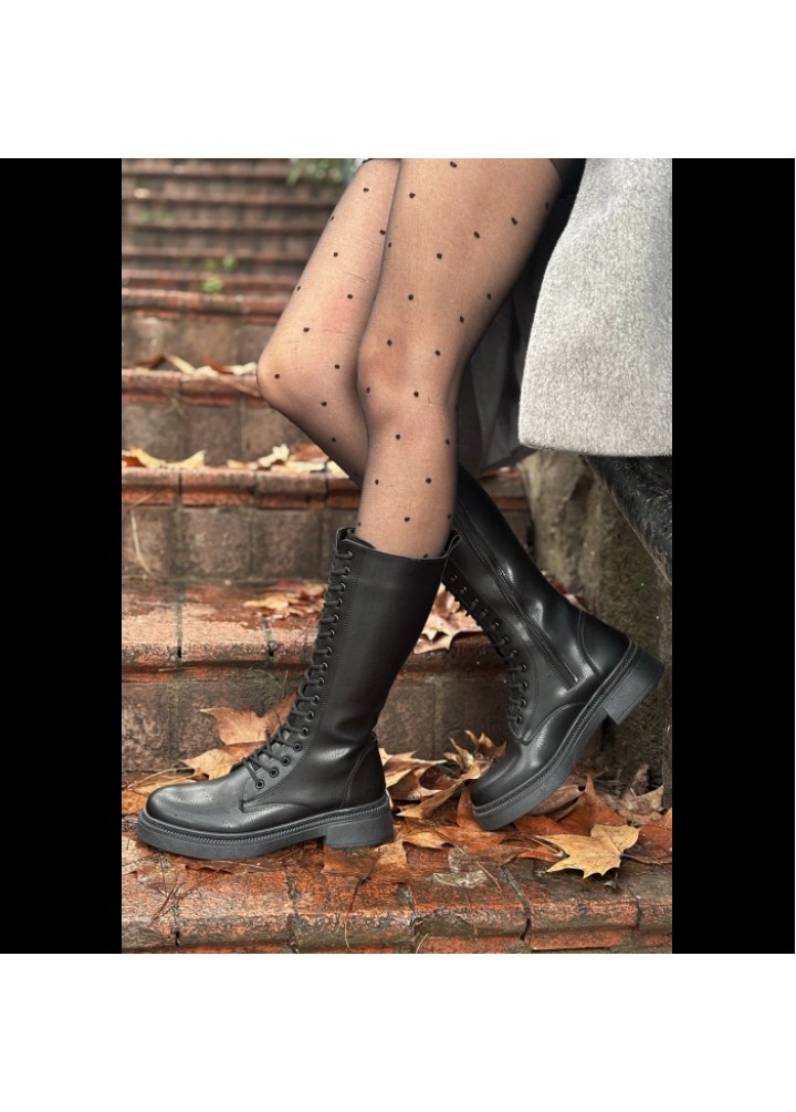 Detay: Topuklu Yandan Fermuarlı Diz Altı Çizme